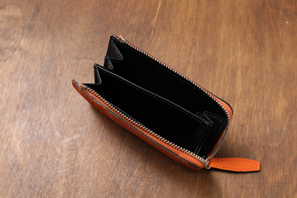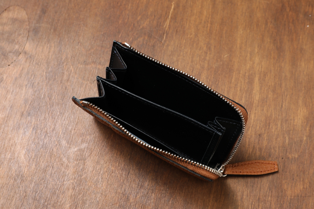 素材はフランス高級メゾンブランドでも使われているドイツのペリンガー社製シュランケンカーフ。クローム鞣しから生まれる弾力と柔軟性、手間を惜しまずシボを出す技術から生まれる凹凸は、型押しでは表現できない本物のシュリンクレザー。このシボの凹凸が更なる耐久性と水にも強くという革製品の中でも特異な特徴へと昇華させています。