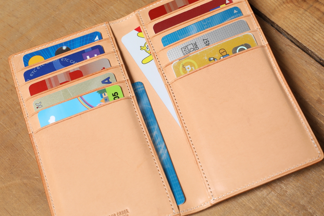カードが両サイドに縦に5枚ずつ入ります。縦型のデザインなので上着の内ポケットにもスマートに入ります。